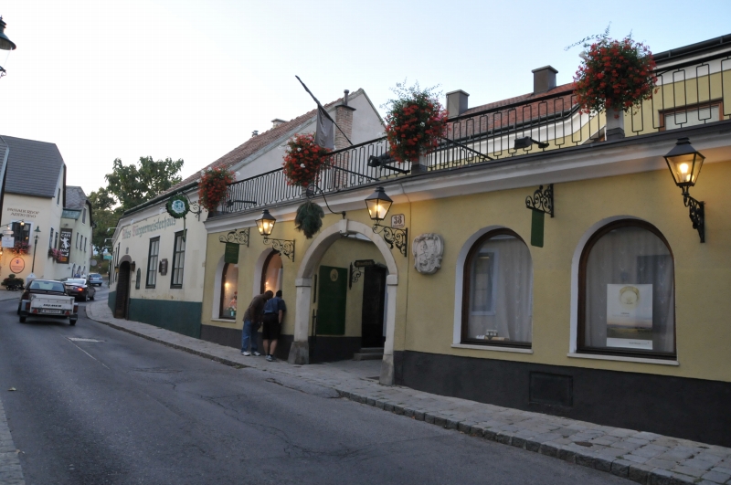 ウィーンで作られたワインを安く飲める居酒屋をホイリゲといいます。このホイリゲが集まる町のひとつがグリンツィングです。大規模なホイリゲが多く、観光バスがひっきりなしに訪れます。トラムで行く場合は38番系統に乗って終点下車です。