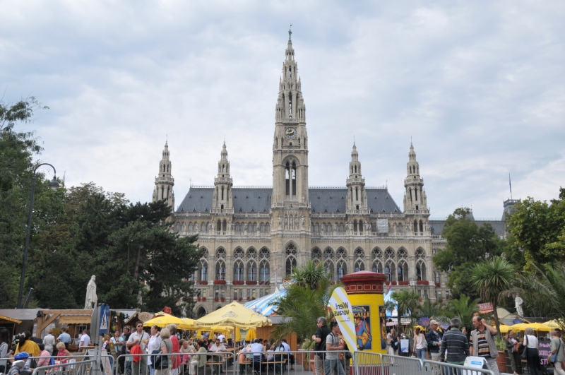 ウィーンの市庁舎はとても立派な建物です。塔の上の像は、皇帝から「教会より高い建物を作るな」と言われた製作者のささやかな抵抗だとか。市庁舎前の広場はいつもなにかイベントが行われており、私が行った時はサーカスが行われていました。