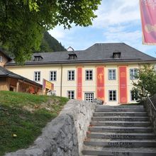 ハルシュタットのメインストリートに沿った場所に建っている建物がハルシュタット博物館です。古代のハルシュタット時代の出土品などが展示されています。博物館の建物への階段には日本語で「タイムトラベル」と書かれています。