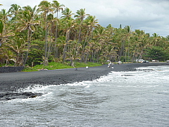 ハワイ島1日観光のコースで立ち寄りました。ハワイでないような黒砂の海岸が不思議でいした。岩場から下を見ると、カメが泳いでいてかわいかったです。ガイドさんが、カメに触ると罰金をとられると話したので、みな近寄らないようにしようと話していました。