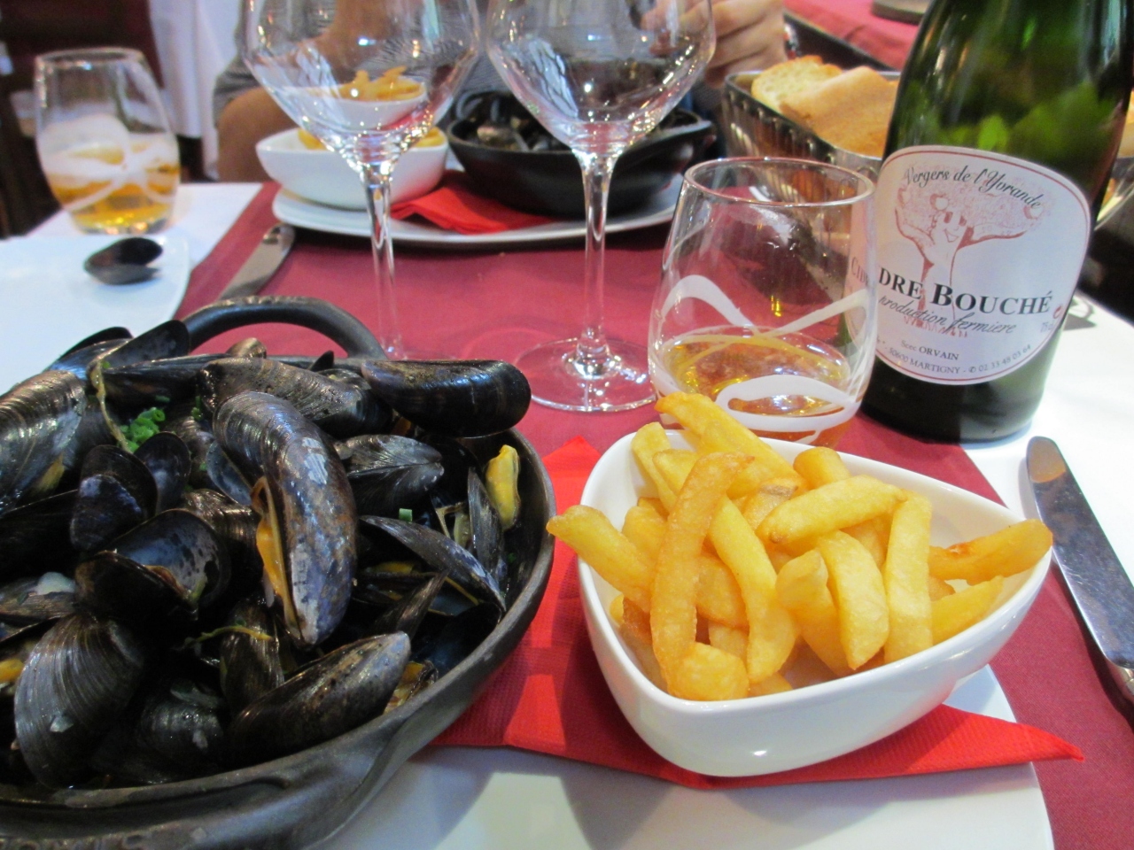 ノルマンディー地方の名物、ムール貝のワイン蒸しとシードルを頼みました。