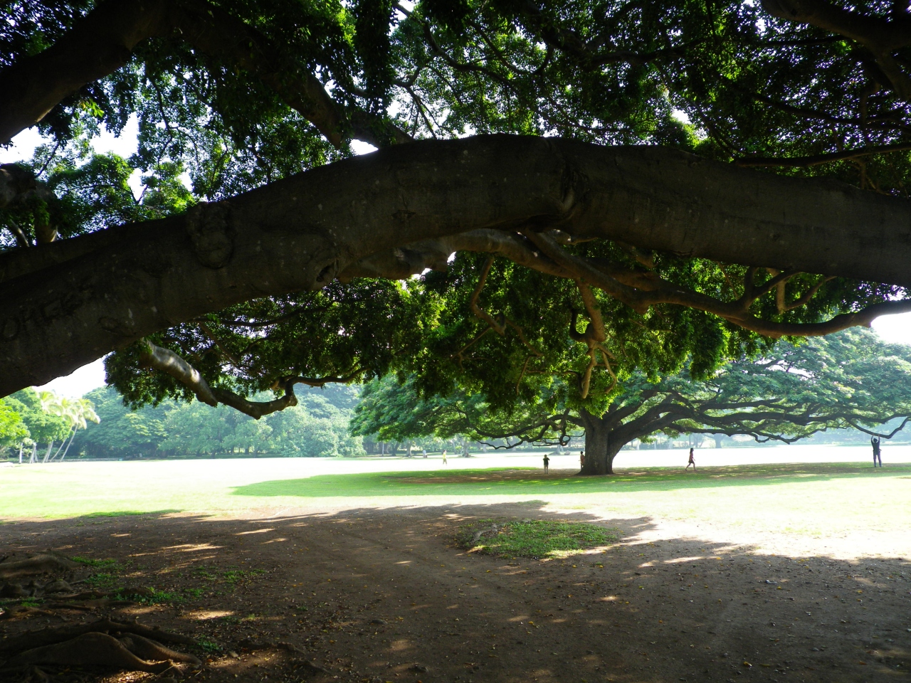 ハワイに行くと必ず行きます。ハワイに到着し、空港からレンタカーを借りたときや、または、日本に帰るときに寄ります。朝の早い時間帯であれば、殆ど人はいません。大きな木の幹にしがみついて、パワーをいつももらってきます。時には、白くて小さな花が咲いていたり、鳥が沢山、とまっていたり、ただ、今までに何回か、入れない事がありました。芝生の手入れなのか、それとも木の手入れなのか、わかりませんが、そんな時はがっくりしてしまいます。