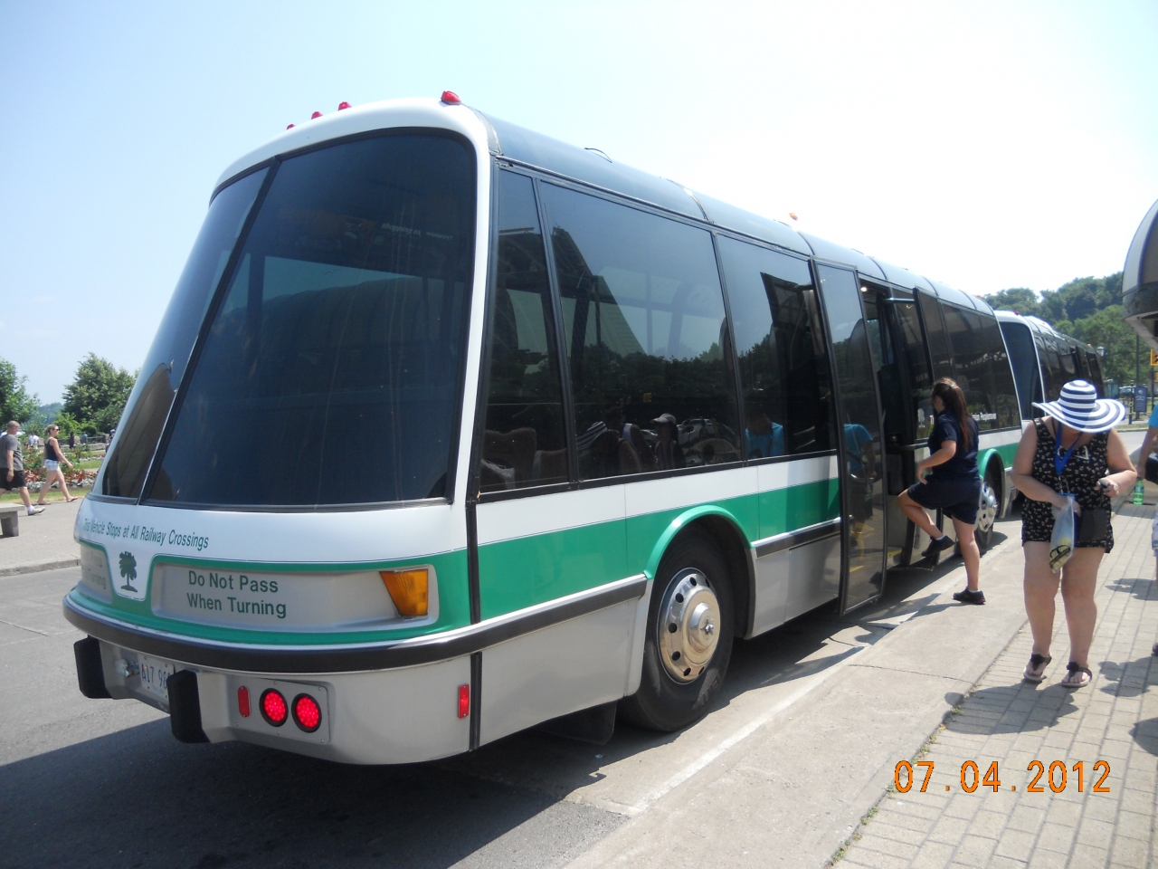 ナイアガラ・フォールズの観光エリアでの移動に利用した、Peoplemover Bus。 サマーシーズンのみ運行されています。 私が訪れた時に見かけたPeoplemoverは全て2両編成で運転されていました。 かなりゆっくり走行します。 ナイアガラの滝が見えるエリアでは滝もゆっくり見れるしあまり速度も気になりませんが、ちょっと外れまで出ると、普通の乗用車にどんどん抜かされていきます…(でも、バス自体は最高速度で走ってる模様…)。
