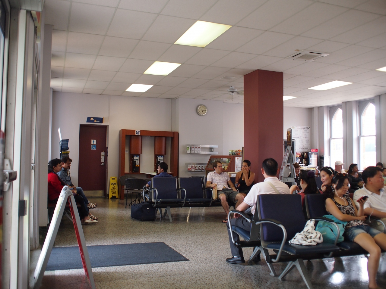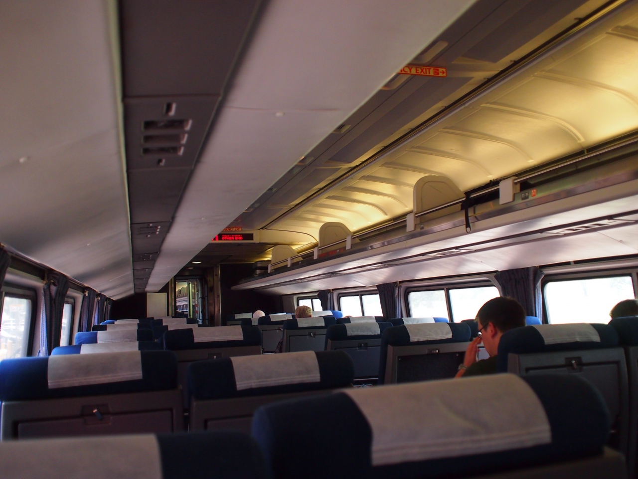 色々な乗り物に乗りたい!と思い、カナダ旅行中に利用しました。 利用区間は、ナイアガラ・フォールズ→トロント間の2時間です。 この列車は、アメリカのNYからAmtrakのMaple Leaf号としてやってくる列車で、カナダの国境を越えて初めてのナイアガラ・フォールズ駅で、車内での入国審査が行われます。 ナイアガラ・フォールズ以降の駅からの利用者は関係ありませんが、乗客全員の入国審査が終了するまで、ナイアガラ・フォールズ駅では新しい乗客は乗ることが出来ません。