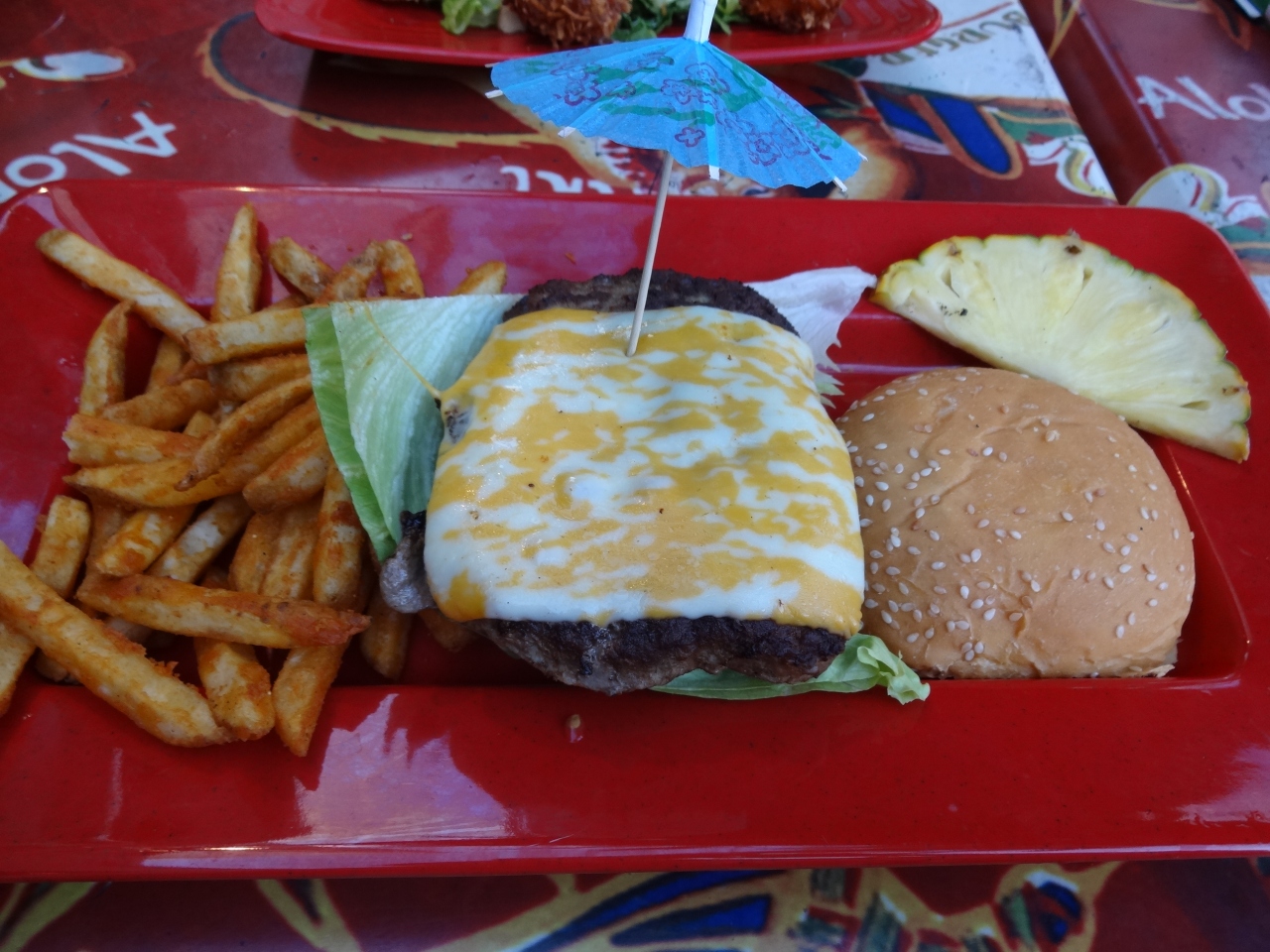 時差ボケでおなかがあまり空いていなかったので、チーズバーガーとシュリンプサラダを