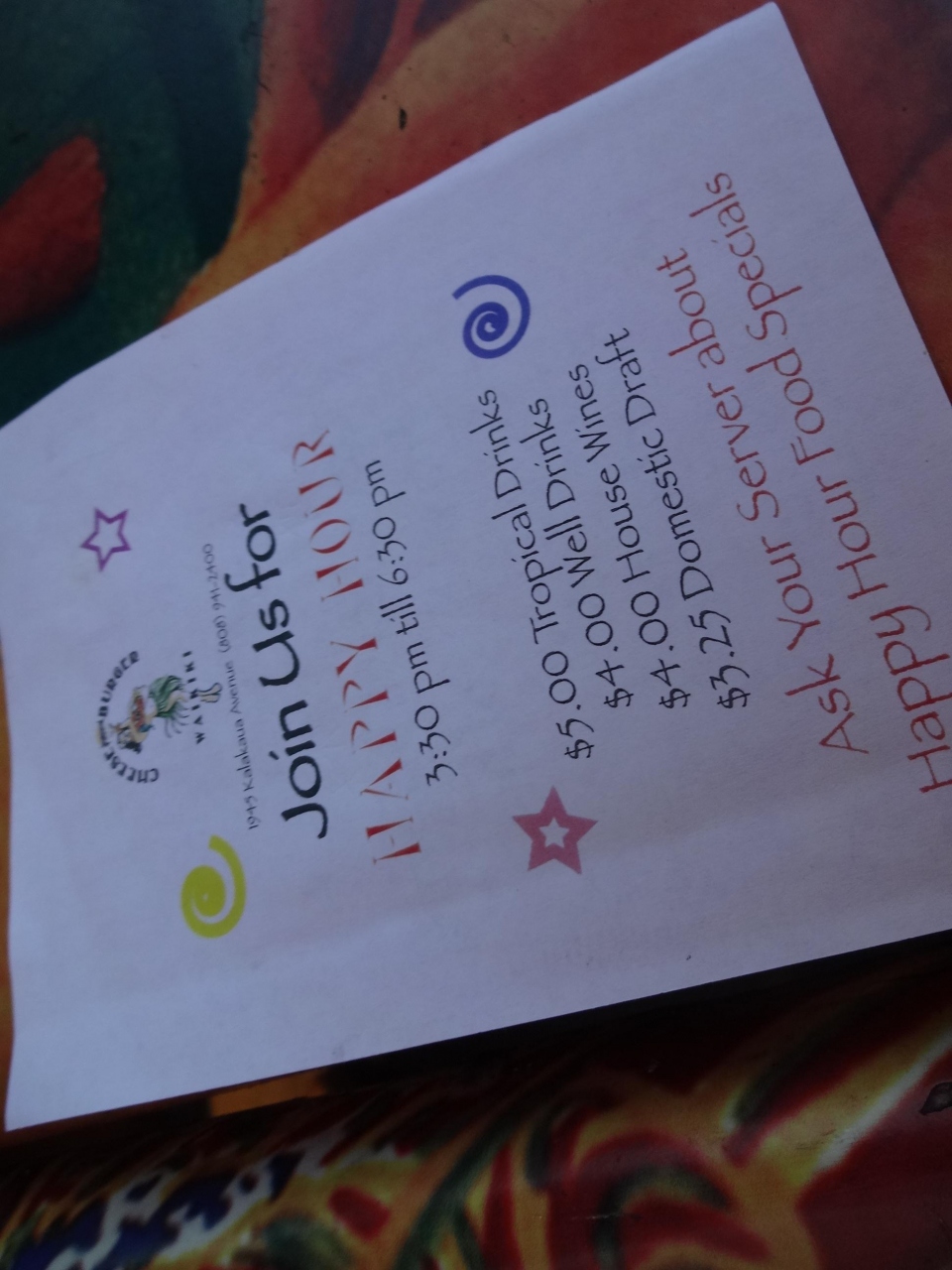 夕方頃行ったのでハッピーアワーがやっていて、お酒が少し安かったです。
