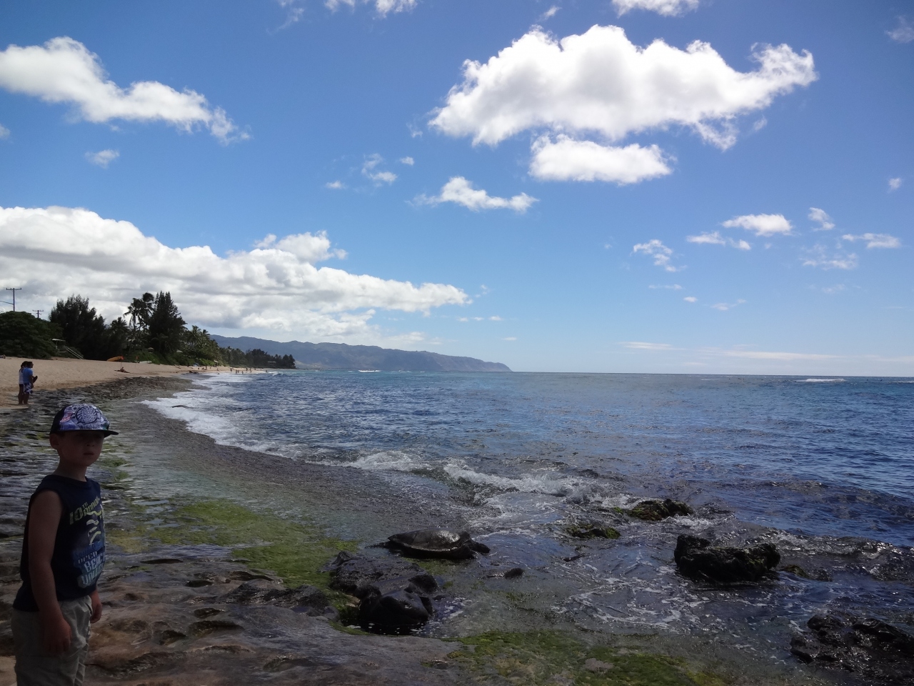 レンタカーで行きましたが、ハレイワの街を通り過ぎ、ラニアケアビーチに行くまでの道で、ものすごく渋滞していました。