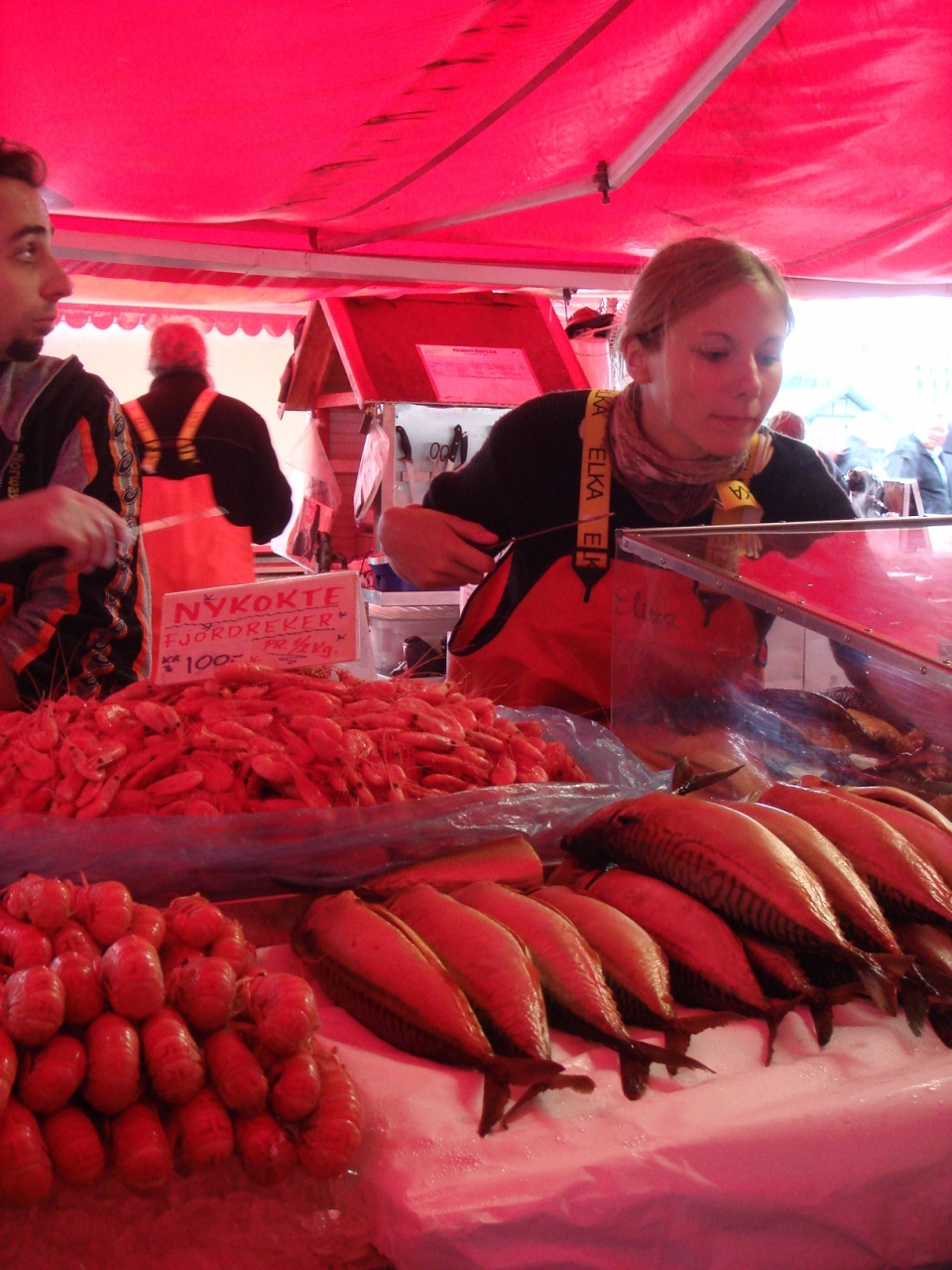 ノルウェーで取れた新鮮な魚たちを見ながら、