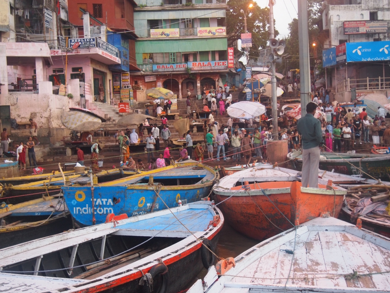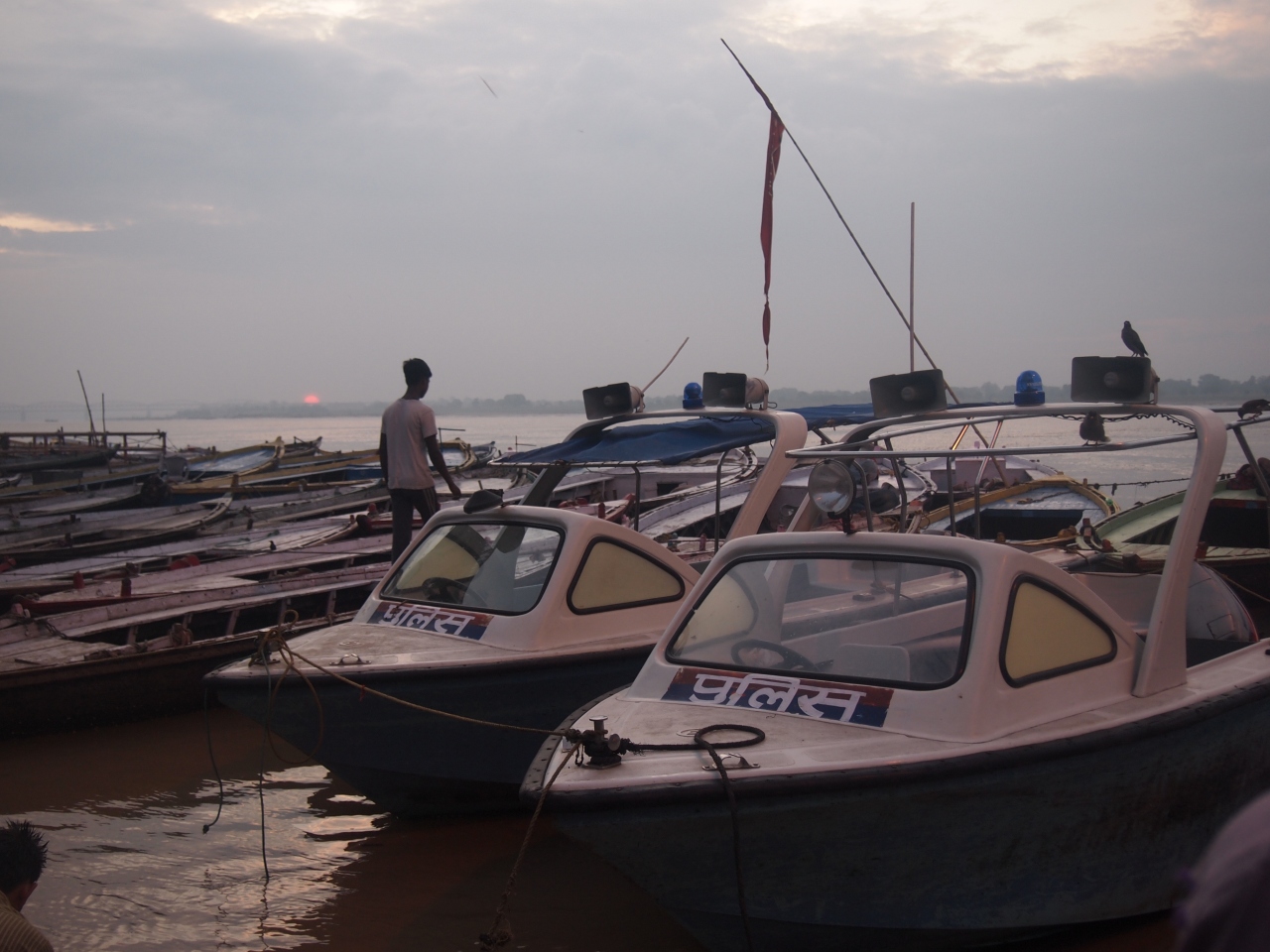 ボートで対岸から沐浴を見る事は出来ませんでしたが、ガイドの意向により止まっているボートを数台渡って先端のボートの上から、ガンジス川の日の出と沐浴風景をみました。
