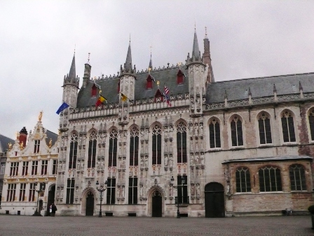 ブリュージュの街は運河と煉瓦造りの建物がマッチしていてベルギーで一番といっていいきれいな街。ブリュージュの市庁舎は1400年頃の建造でベルギーでも最も古い市庁舎のひとつだそうです。600年前の建物とは思えないきれいで立派な建物です。