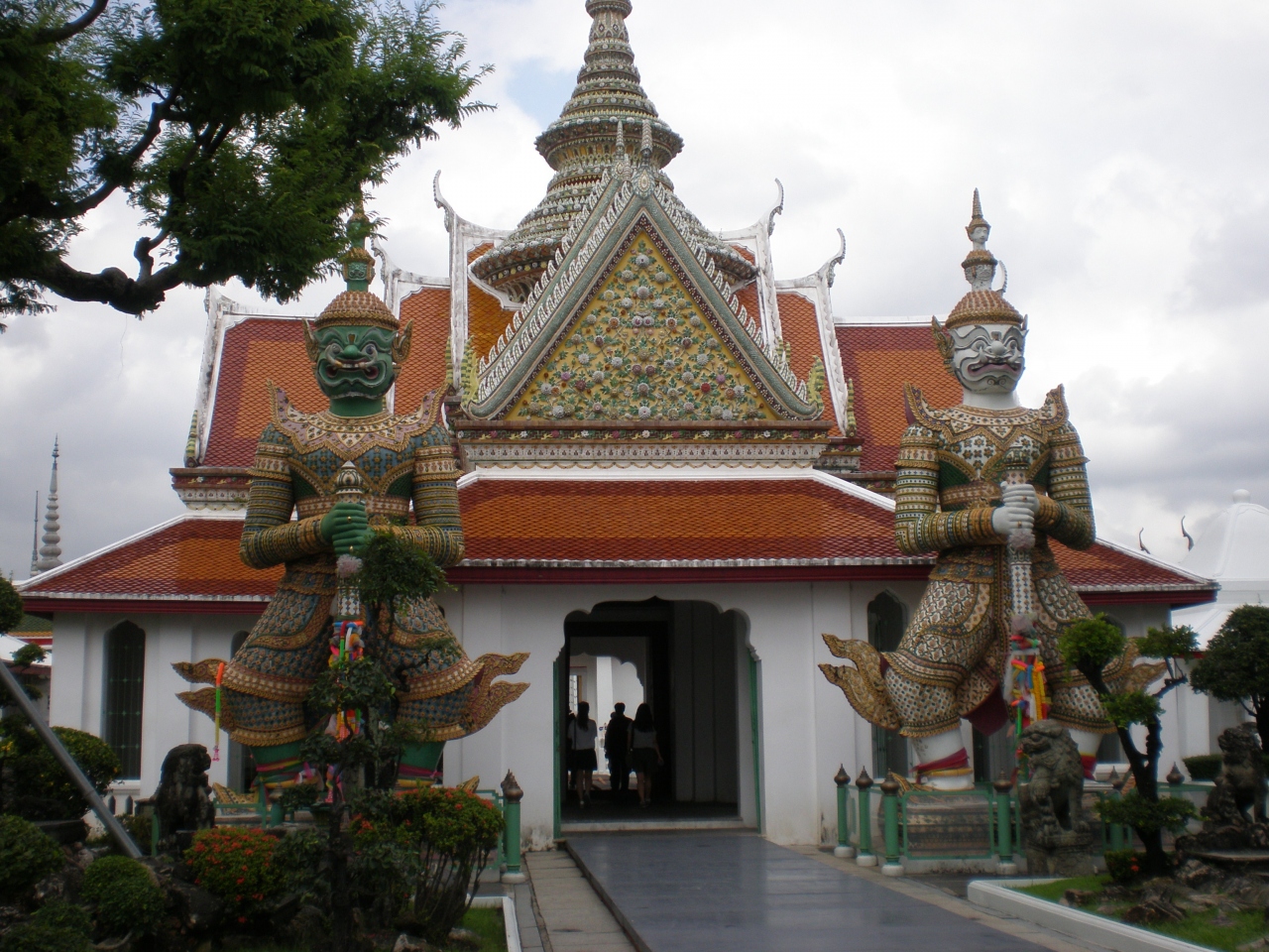 - チャオプラヤー川を船で渡り、桟橋を降りればそこが暁の寺院です。