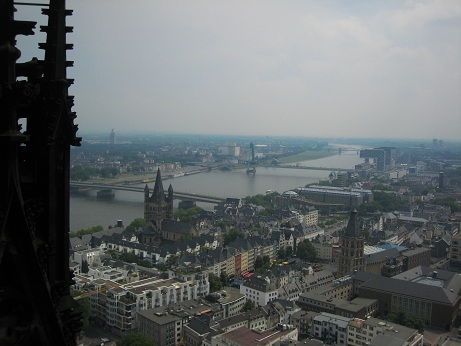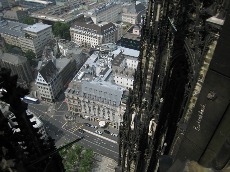 - ケルン中央駅からすぐ南に位置しています。電車の車窓から姿が目の当たりに見えてくるのですぐ分かります。