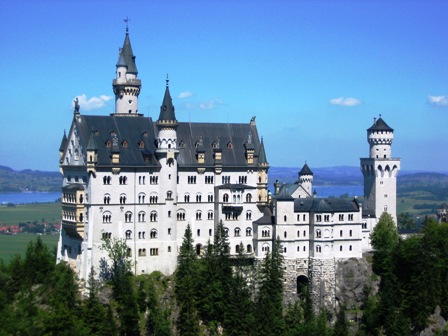 かの有名なノイシュバンシュタイン城です。ドイツの南,バイエルン地方の南端,ロマンティック街道終点のフュッセンという町の南側,ほぼオーストリアとの国境近くにあります。城自体は実用的なものではないのでヨーロッパの建物としては新しいものなのですがさすがに有名なようでヨーロッパとアジアの観光客であふれていました。入場は時間制で券を買うにも結構並びます。また城の周辺を結構歩きます。一日がかりで時間に余裕をもってどうぞ。撮影ポイントは城の裏側のマリエン橋。