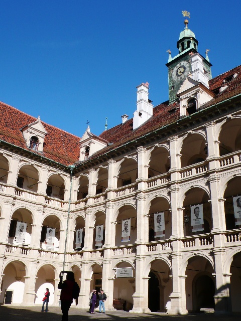 グラーツの旧市街はまるごと世界遺産になっています。白い壁とオレンジ色の屋根の建物が続く素敵な街です。ゆっくりのんびり散策するのにぴったりの街です。写真はグラーツの旧市街,市庁舎の裏に立つ州庁舎の中庭です。16世紀に建てられたルネサンス様式の建物だそうです。