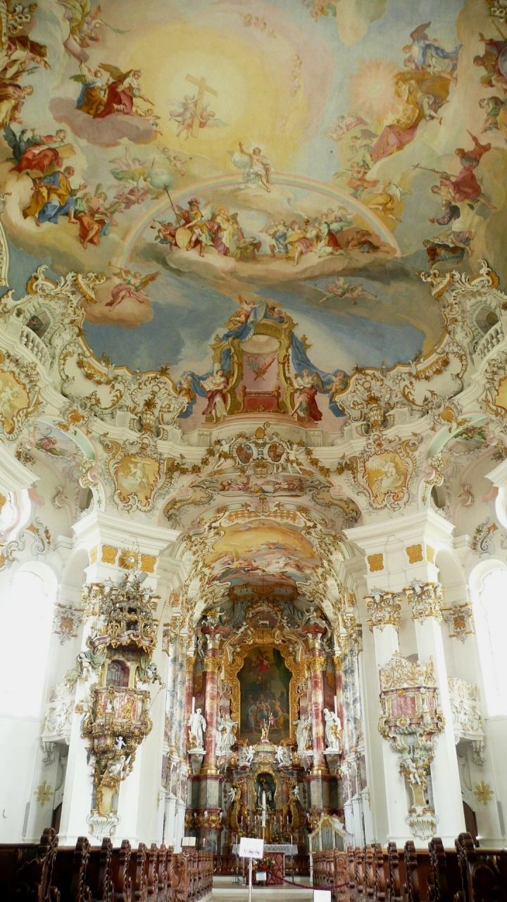 ロマンチック街道から少し入ったのどかな草原の村に突如現れる美しい教会。街中や都会でなく自然に映える建築に感動しました。でも、もっと素晴らしかったのは教会の中でした。見事なフラスコ画に彩られた明るい空間に居るだけで幸せを分けてもらえた様で満足しました。