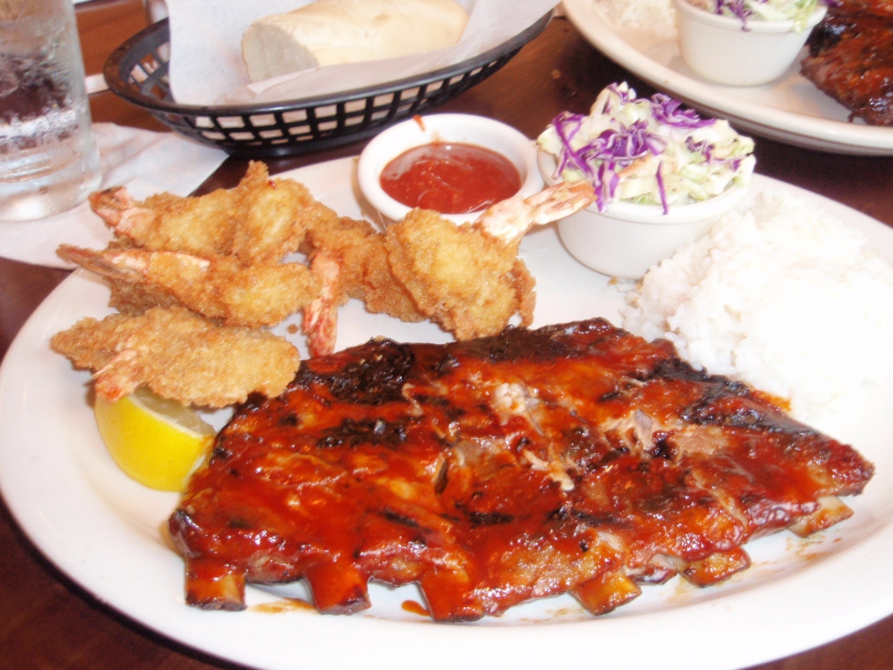 ガイドブックにも載っている有名店で、看板メニューのスペアリブとオニオンリングを注文しました。