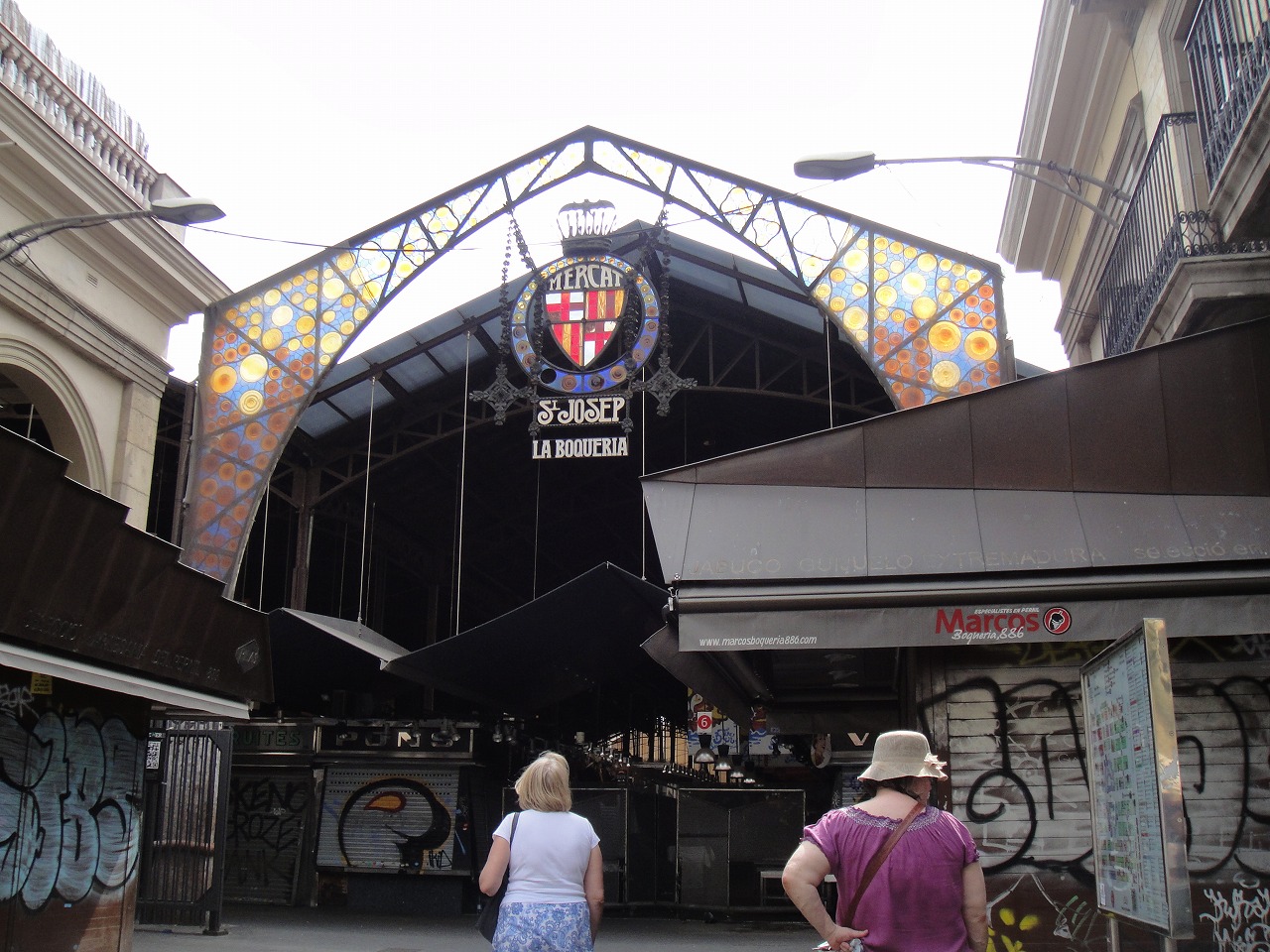 ランブラス通りの端っこに、サンジョセップ市場。野菜、フルーツ、ハム・ソーセージ、新鮮な魚、など色とりどり。品物が、綺麗にディスプレイされている。