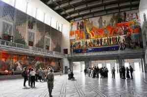 ノルウエーといえば、ノーベル賞。その平和賞の授賞式の会場となるのはオスロ市庁舎の1階大ホールとあっては、見逃せない。入場料も要らず、観光客でもOK。玄関から入れば、すぐです。聞けば、床面積は1500平方メートルを超え、天井までの高さは21メートルもあるそうです。周囲の壁にはしゃれた壁画があり、長椅子まであって、休憩もできるじゃありませんか。毎年12月10日。テレビ中継までされる厳かな会場が、なんと、身近なことよ。感激でした。
