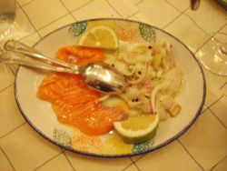 肉や臓物料理が中心のフィレンツェで、新鮮な魚介が食べられるリストランテです。