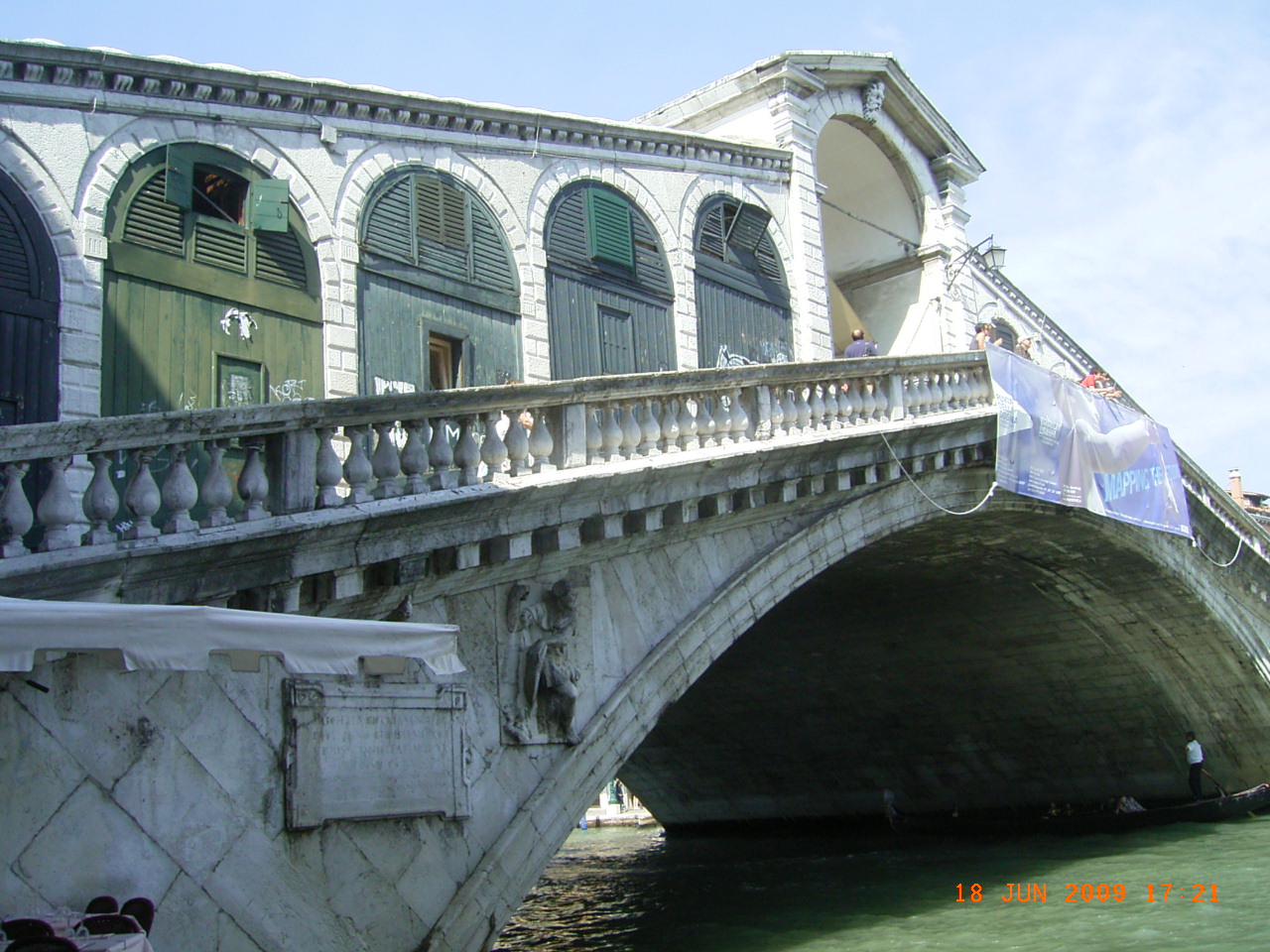 16世紀末に現在の石づくりになりました。それ以前は木製だったみたいです。大運河の中で真ん中あたりにある橋で、いつも人が大勢います。この橋の近くにショップが並んでいます。この橋はとても優雅な橋です。少し離れて見たいです。