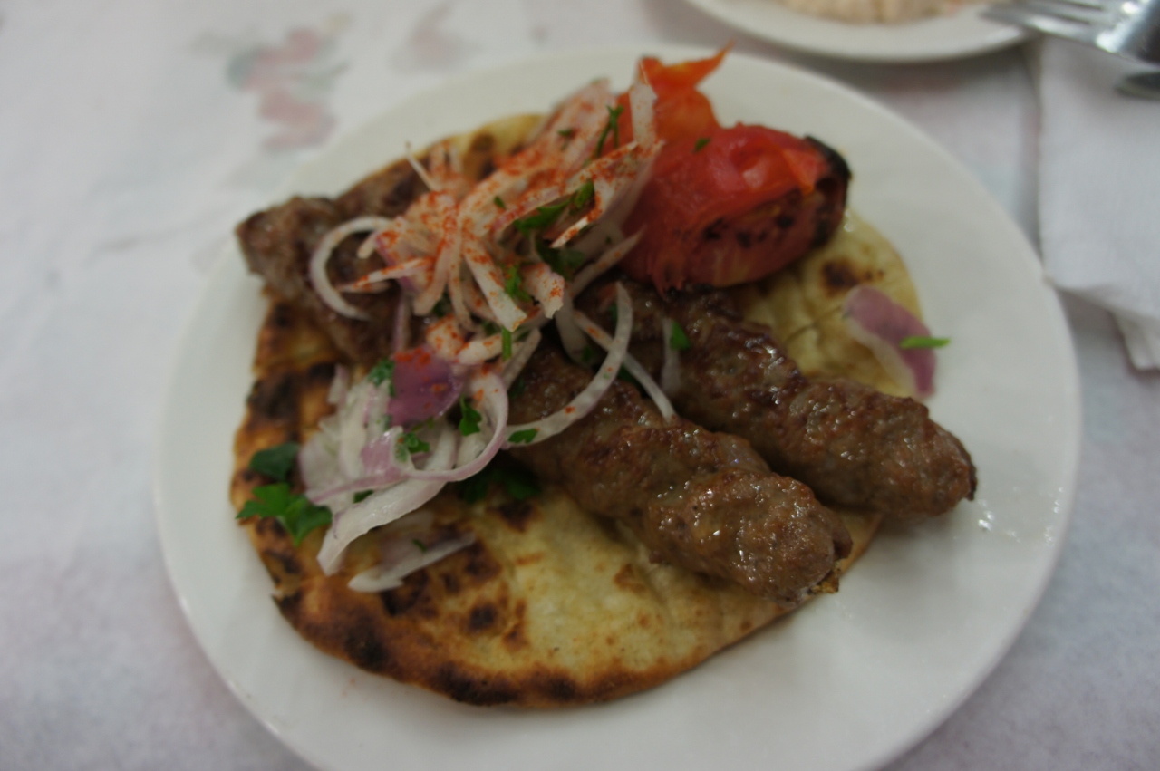 味はもちろん、美味い。羊肉と牛肉を粗挽きにして、固め、炭火でグリルした料理。ちょうど、焼き鳥屋のつくねのお化けみたいな料理。