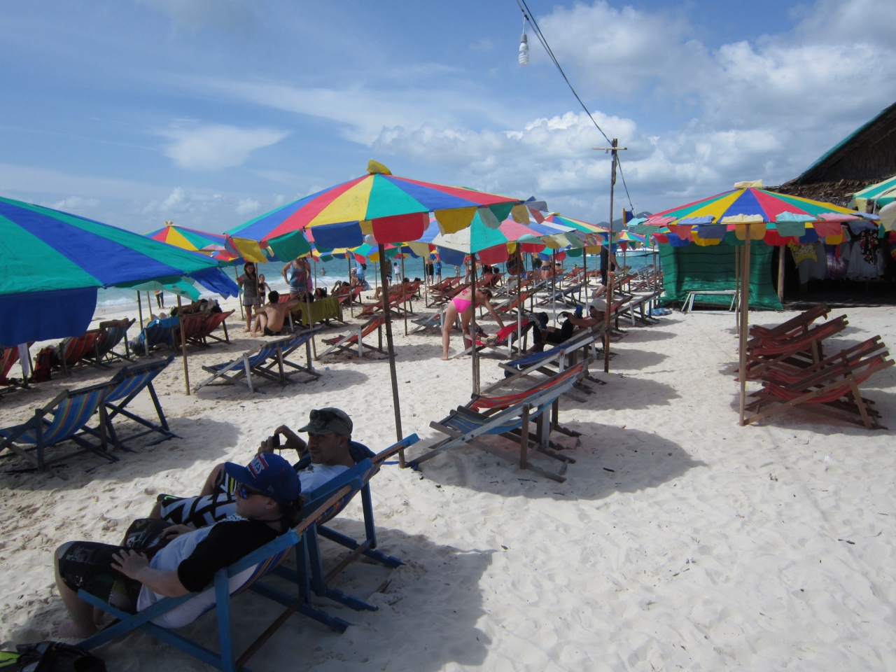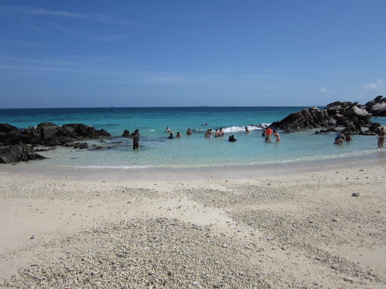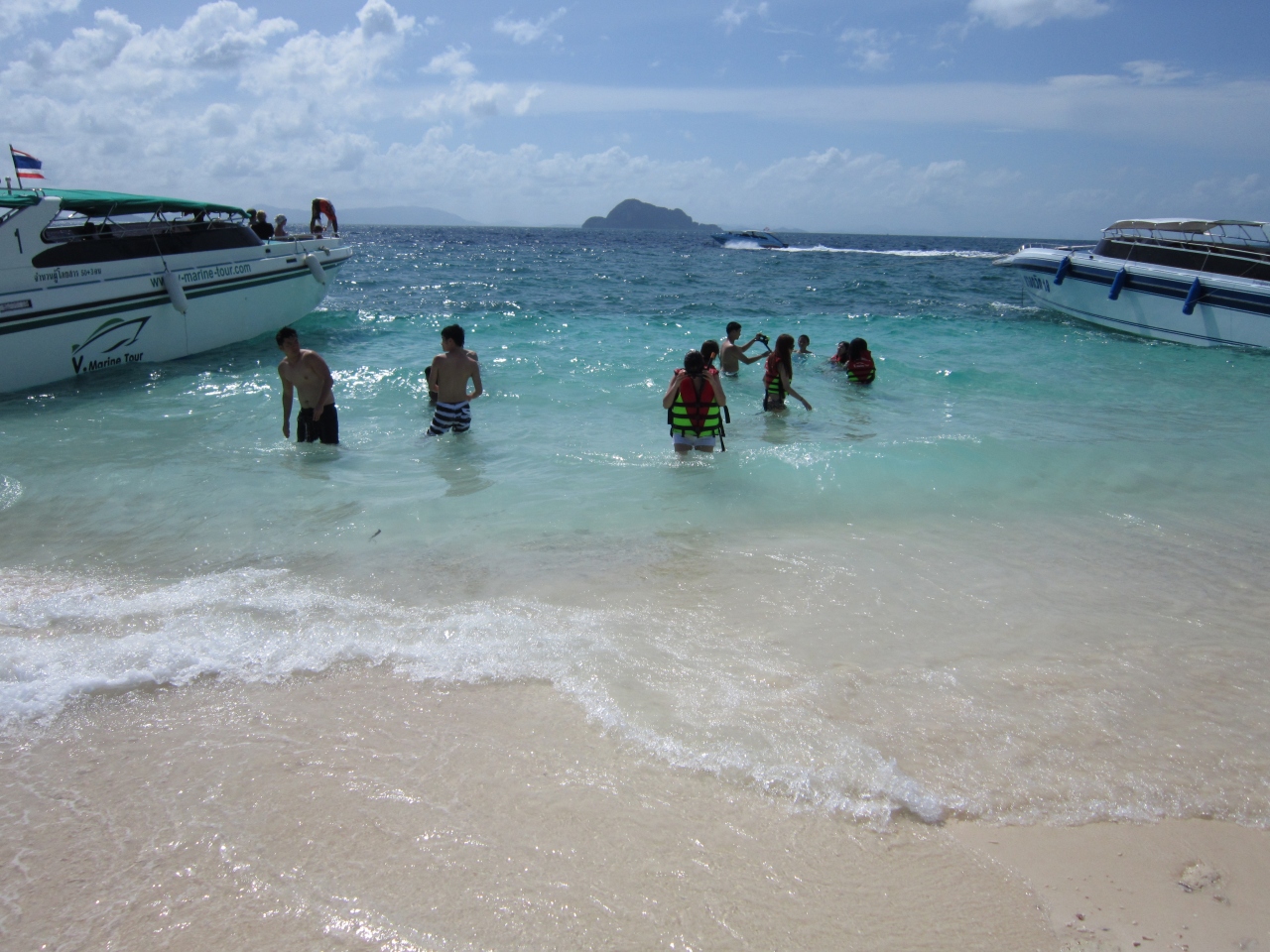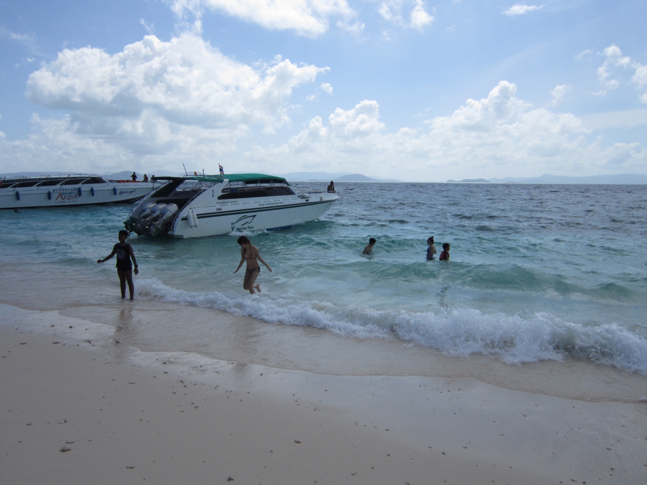 現地ツアーに参加しカイ島に上陸してきました。英語ガイドさんの話によると、雨季のため、あまりきれいではないそうですが、シュノーケリングを楽しんできました。ガイドさんが用意してくれたパンを持って海に入ると、種々の魚がたくさん集まってくるのを見れたのが印象的でした。浜辺の椅子を利用すると150バーツと有料なのが観光者向けのサービスです。