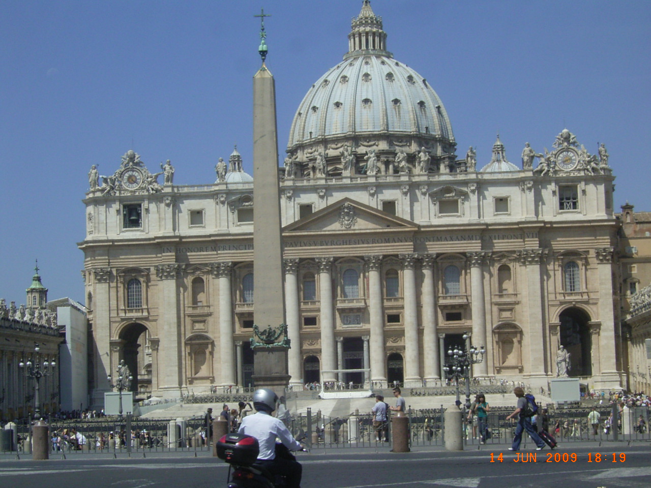 カトリック教会の総本山です。ルネッサンス式の建物です。前の広場は大きく円形になっています。中央にオベリスクが立っています。この大聖堂を護衛しているのは、今もスイス人傭兵です。内部では、ミケランジェロのピエタ像がすばらしいです。また正面のステンドグラスに浮かぶハトの姿がすばらしいです。