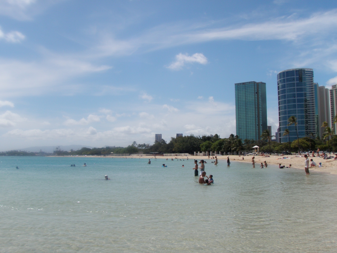 ワイキキビーチと比べると波がほとんどないのですが、ちょっと進むと深くなるので小さなお子様は注意が必要です。