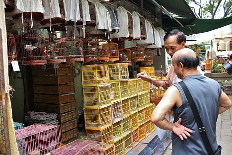 花屋通りを抜けると鳥の声が聞こえ、声のする方へ向かうと雀鳥花園の入口があります。