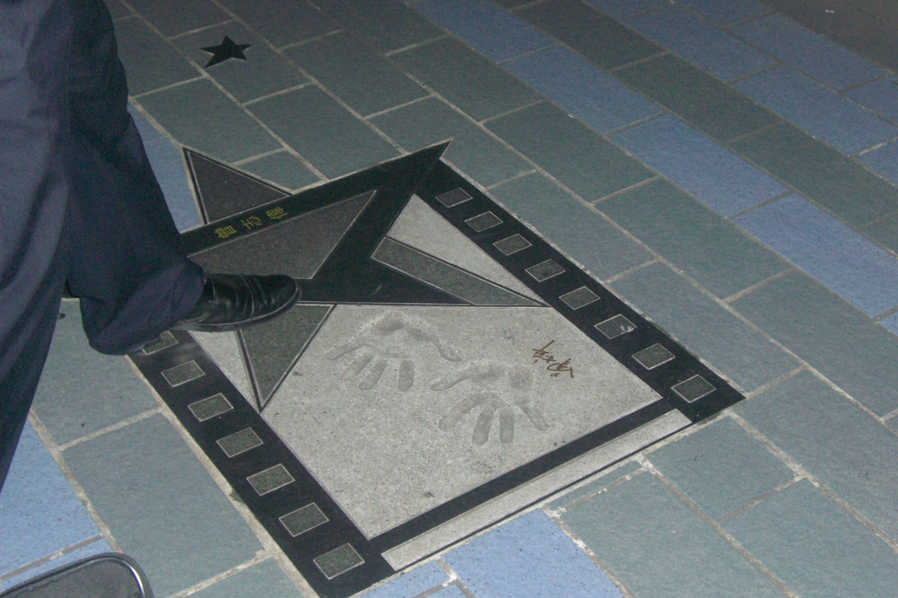 九龍のビクトリア湾沿いにアベニューオブスターズという散策路が有り、道にはジャッキーチェーンなど香港映画のスターや監督の手形プレートが埋め込まれてます。