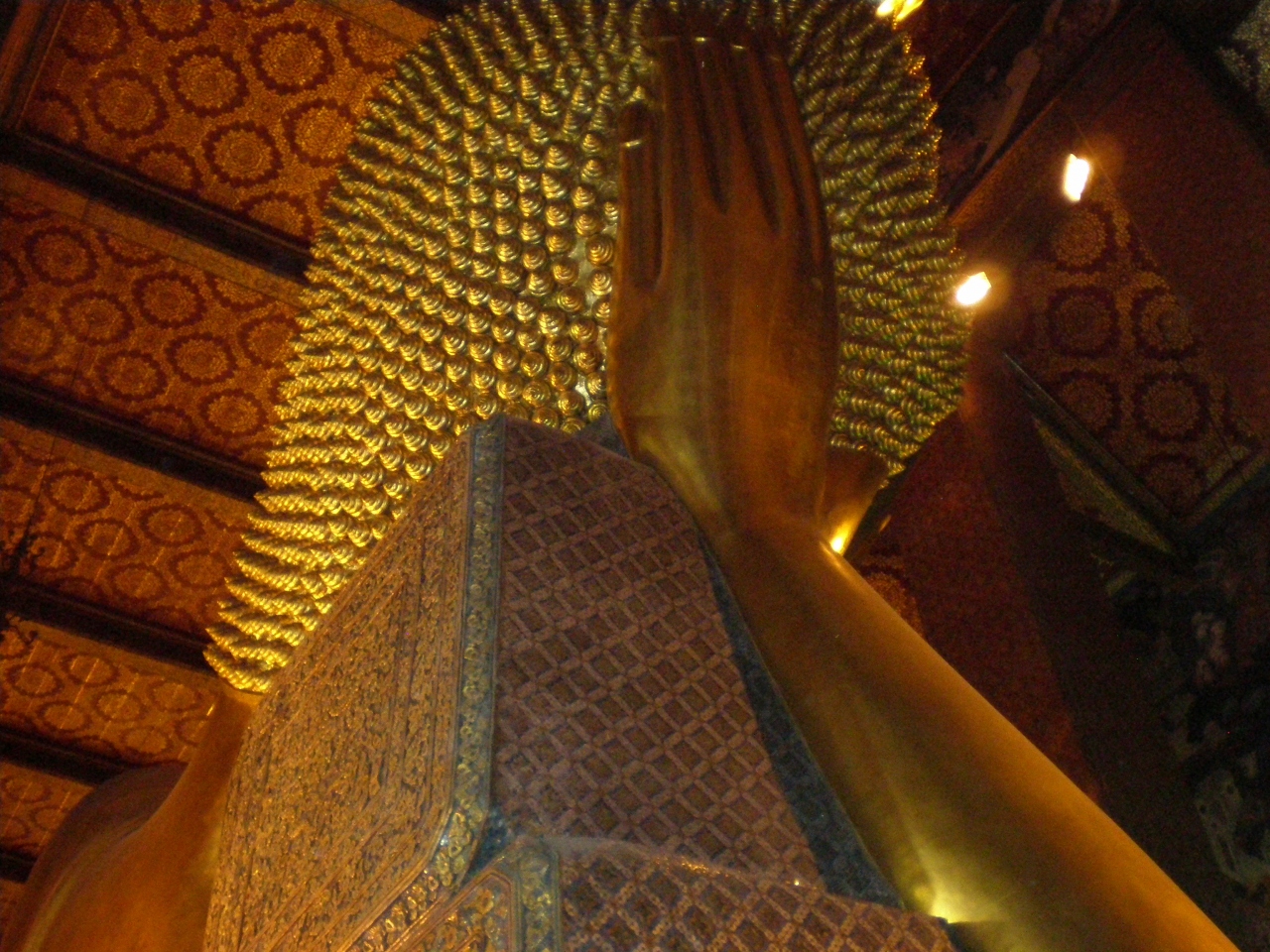 今回はじっくりと涅槃像を頭側から足裏側から、背中に回って裏側からも見ることができました。