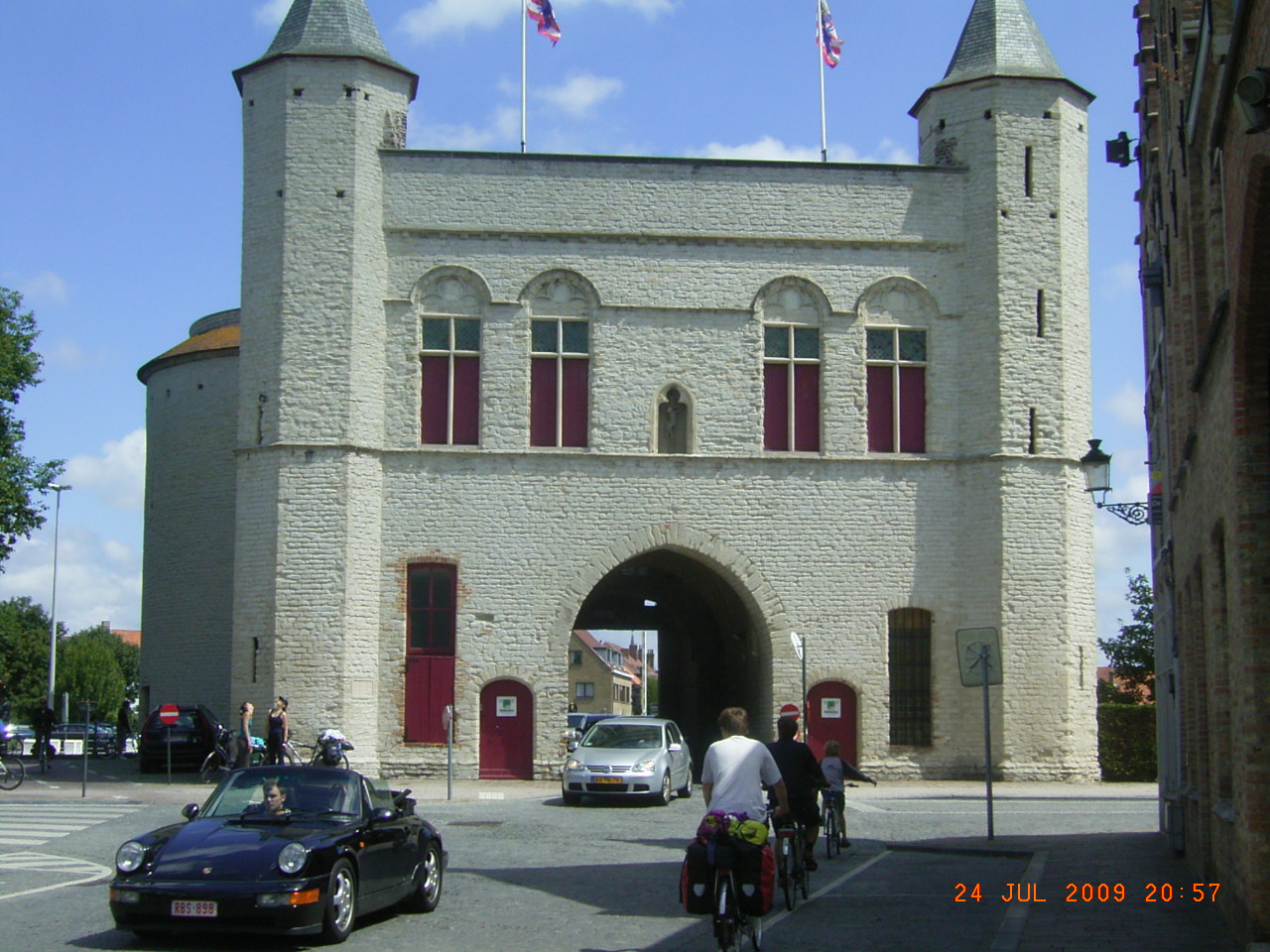 街の中心のマルク広場から1km東にある門です。町は水路で囲まれています。門をでるとすぐ橋があり、掘割も見られます。この門は15世紀初めに建てられたようです。2つの塔があり、建物のような門です。橋も趣があります。