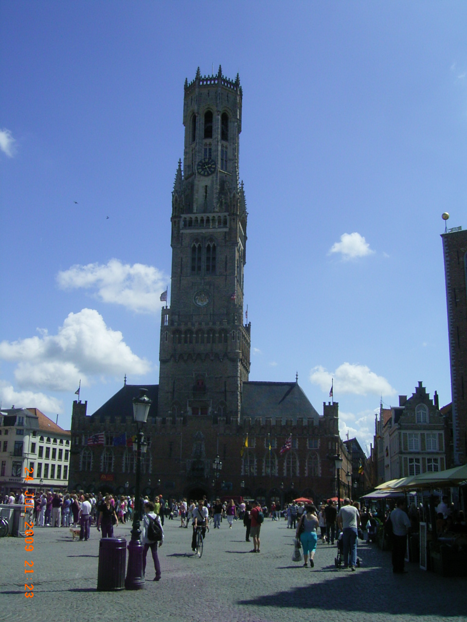 マルクト広場に面して立っています。13世紀から約200年かけて建てられました。高さは80mを超えます。ラセン階段で上に登れます。ブルージュの街が一望できます。この塔は街のどこからも見えます。まさに街のシンボルです。
