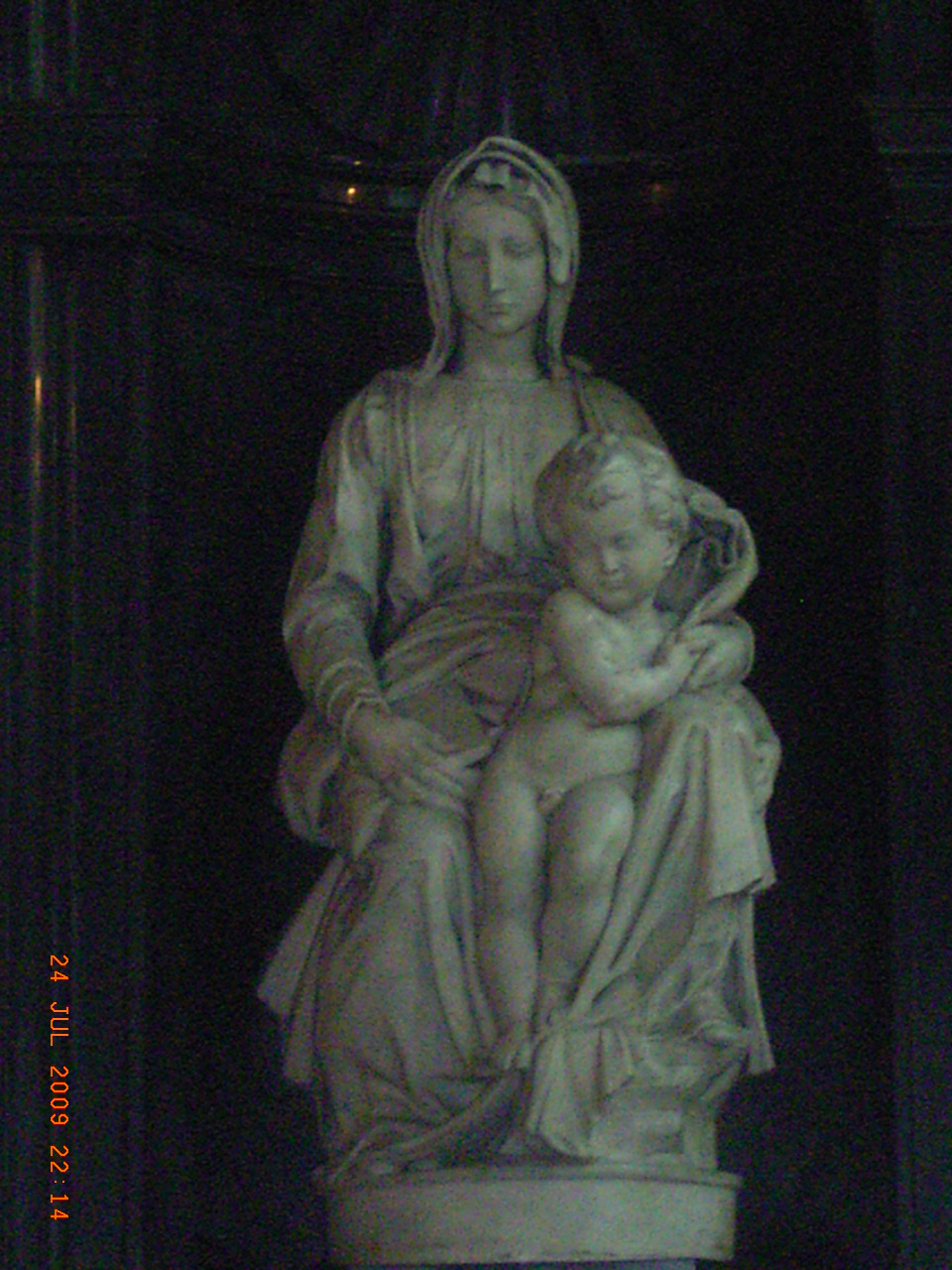13世紀から約200年かけて作られた教会です。高い尖塔が街のどこからでも見れます。その後何回か修理されてきました。内部は素晴らしく、柱に施された彫刻や像など見応えがあります。その中に、ミケランジェロの「聖母子」の像があります。