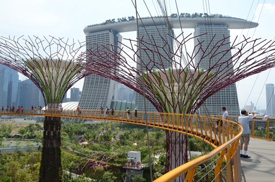 不思議な枯れ木のような形をした塔がいくつも立っているスーパートゥリー・グローブも見所の一つで、OCBCスカイウェイという屋外空中遊歩道があります。