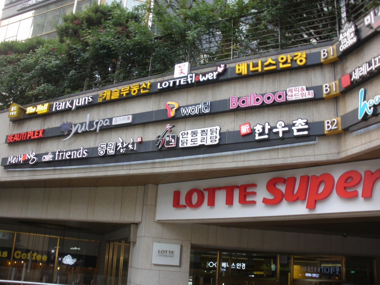 ロッテ・シティホテル・マポの地下1階にあり普段の冷蔵庫代わりをしていたロッテスーパー(孔徳店)だ。やはりマートと比べてしまうと小さいが必要なものがそろっておりかえって楽だったりした。値段はそれほど違わなかったり若干高かったものもある程度だ。