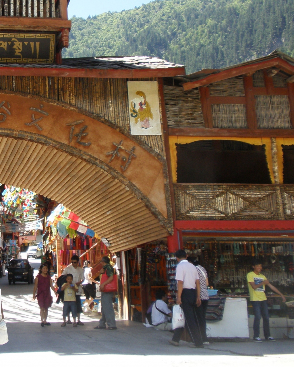 九寨溝観光でくたびれた時に、ふっと一息つける場所です。大自然ばかりの景観から、この1角だけは人間臭い生活感があります。たいしてみるべきものはありませんが、道の両脇に並ぶおみやげもの店をのぞいたり、アイスを食べたりで、時間をつぶすことができます。