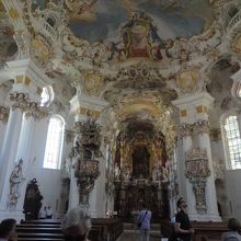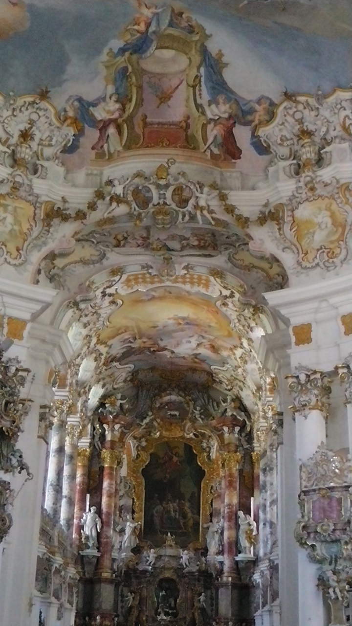 レンタカーでノイシュバンシュタイン城を見た後行きました。30分ぐらいで到着。辺鄙なところにあり、少々わかりづらいかな。教会自体はそれほど大きくなく、みかけはシンプルなんですが中に入るとそれはそれは壮麗なフレスコ画や煌びやかな装飾に圧倒されました。ヨーロッパでもっとも美しいロココ教会だそうです。一見の価値ありですよ!