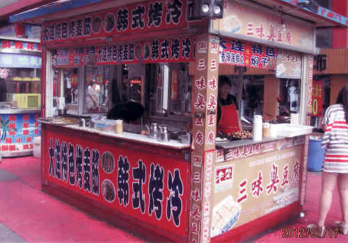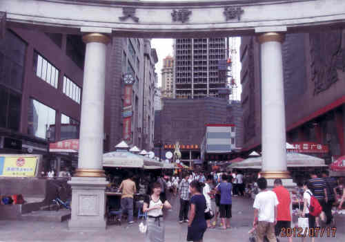 天津街は昔ながらの大連一の繁華街です。大連駅前の勝利広場の東端、ラマダホテルの横に有ります天津街の西側入口。ここから露天店の雑貨を見て廻る事や中国国内外の小吃を食べ歩く事がとても楽しい歩行街です。途中右や左に斜めに曲がったり、階段で下ったりと変化に富んだ歩行街です。偽物のブランドバックも売られています。天津街から中山広場、友好広場へも歩いて行く事ができます。