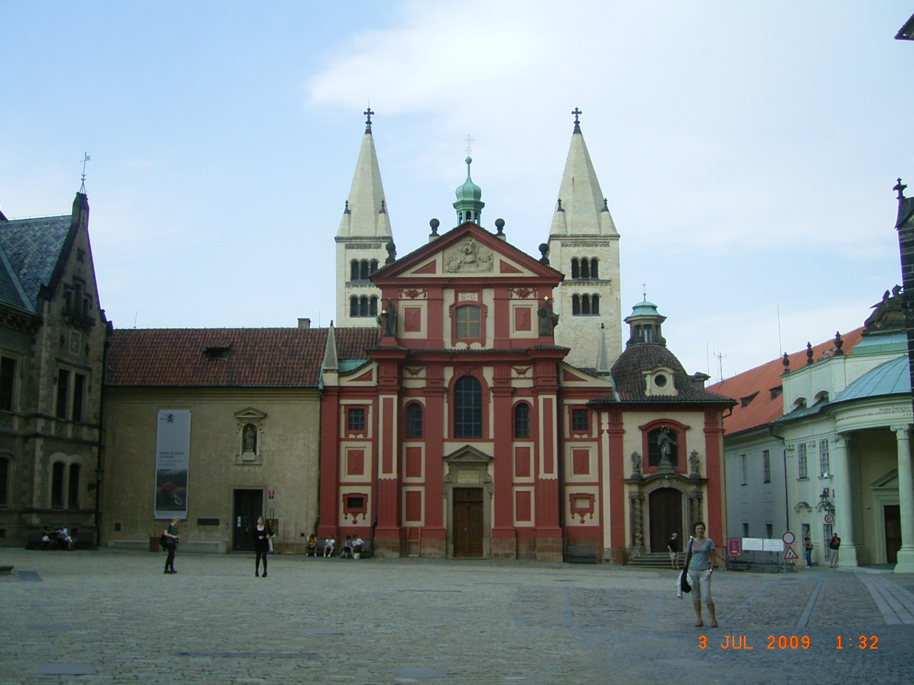 聖ヴィート大聖堂のそばにあります。2本の白い塔があります。古さを感じさせませんが、最初はロマネスク様式で造られた10世紀の城内最古の教会です。17世紀にはバロック様式の建物も増築されました。白い塔の正面も魅力的です。