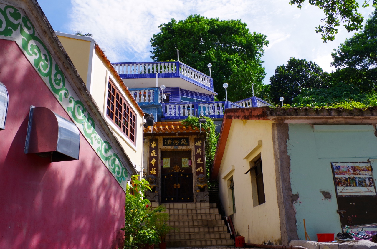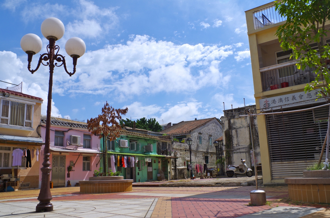 台風一過の晴れた空に鮮やかな家並みが映えた街でした。人で溢れているマカオ半島よりとっても素敵!小さな港もあり釣り人がいたり、干物や水上住宅もみれます。エッグタルトの有名店もあり、プラプラと散歩しながら楽しめる街です。