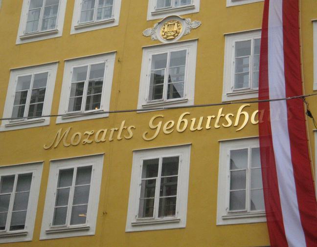 オーストリア西部に位置するザルツブルクです。空港はありますが私は日本からウィーンまでの便を利用し列車にてザルツブルクまで行きました。列車の便にもよりますが約3時間程度です。駅から市街までは道はほぼ一本ですので地図を持っていれば簡単です。歩いて約10~20分。クリスマスの時期は人がすごく多いですし夜も沢山の人です。その中にモーツアルトの生家があります。約10年ほど前に訪れた時には無かったのですが小さなスーパーが生家の1階にできたいた事は少しショックでした。確かに便利かもしれませんがどうとも言いかねます。中にはベーカリー、スイーツコーナーももうけられ'aida'のケーキも売ってあり、モーツアルトのケーキも売っています。黄色い家で目立つのですが一つのお店として通り過ぎてしまいそうなので注意して探して下さい!