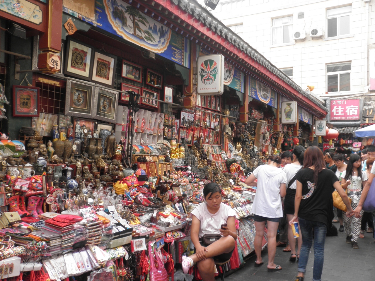 北京一の繁華街なので、人の多さは仕方ありません。ただ、屋台街以外はそれほどでもなく、ひろーい道が歩行者天国になっていて、その両脇に雑貨の出店があったり、真ん中に、生ビールを飲めるビアスタンドがあったりして楽しかったです。