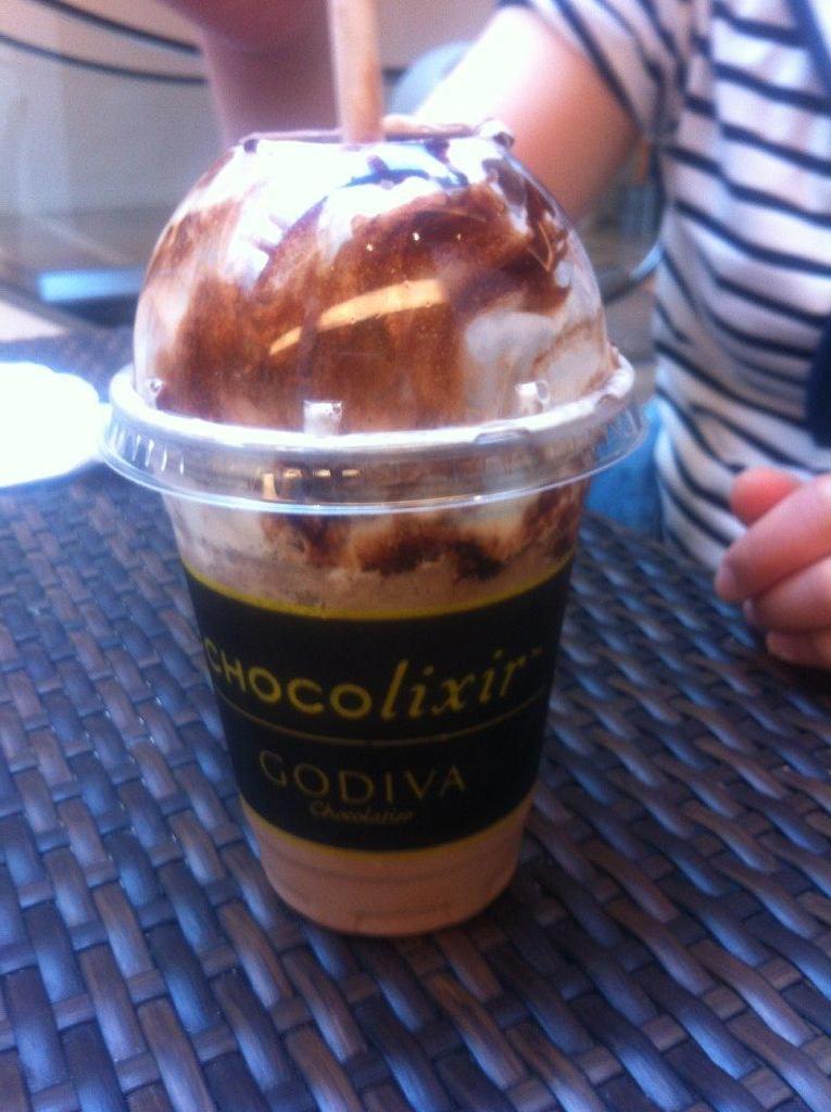 通りかかるといつでも寄りたくなる「GODAVA」。グアムの町歩き中の休憩にぴったりです。作ってもらったチョコリキサーは、そばにある休憩スペースでのんびり頂けますよ。
