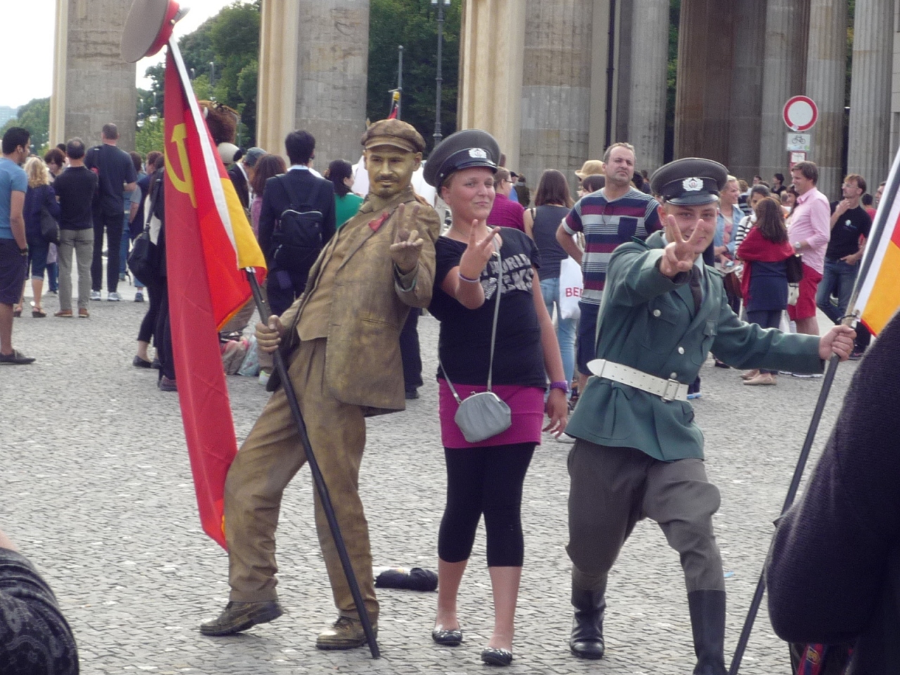 ポツダマー・プラッツから歩いてここにきました。右にユダヤ人犠牲者記念館をとおり、左にティ―アガルデンを見ながら、きました。門の西側はまっすぐな広い道路で気持ちがいいです。東側は広くパフォーマンスをされてる方がいらっしゃいました。