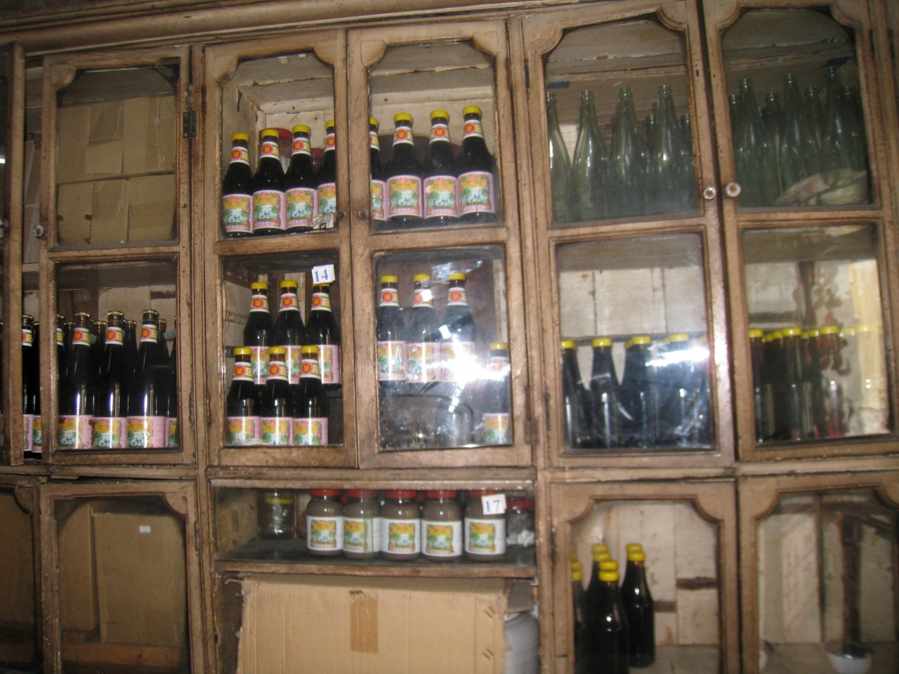 商品は大瓶と小瓶のオイスターソースと蝦醤の3種類のみ。