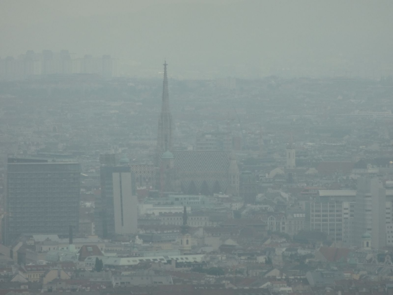 天井がガラス張りのエレベータを登るとウィーンの市街が一望できる展望台に。