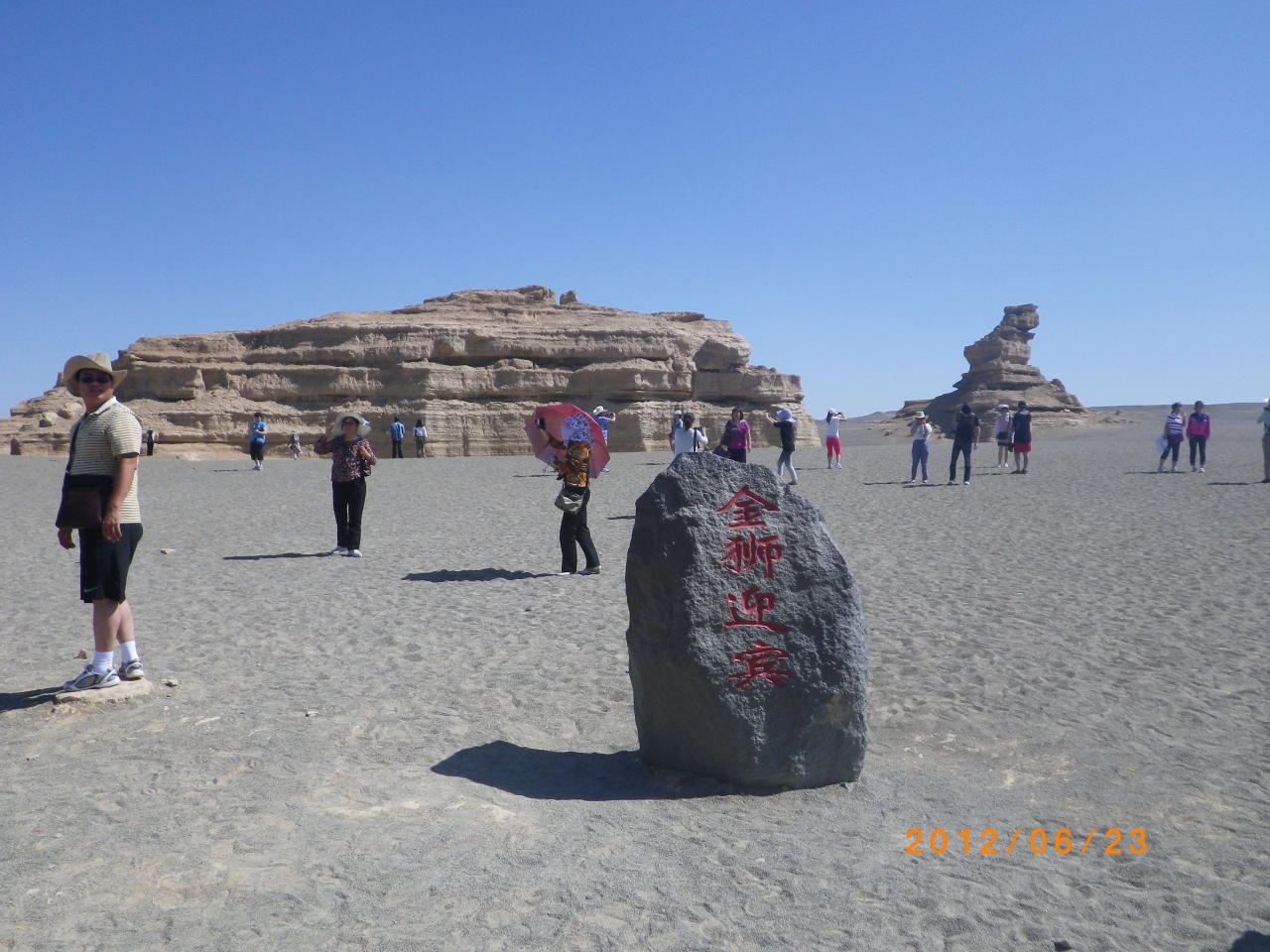 停車するのは金獅迎賓、獅身人面(スフィンクス)と呼ばれる岩の前で停車。約10分停車後石細工工場のところで、降ろされて、45分自由見学時間。近くには孔雀と呼ばれる岩が。