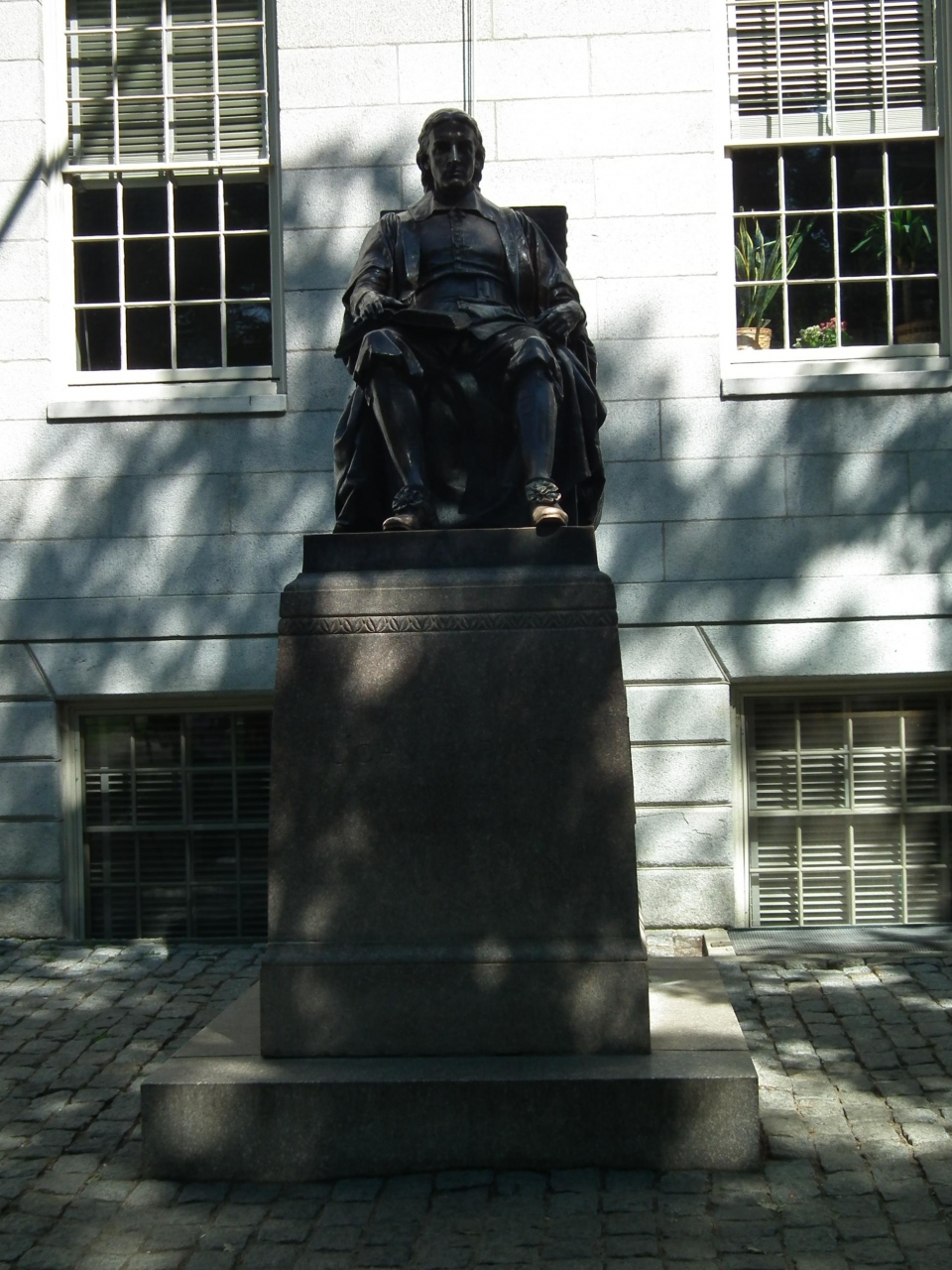 ・ハーバードヤード(緑地)のジョン・ハーバード銅像前は記念撮影の人々でさすがに込んでいました。
