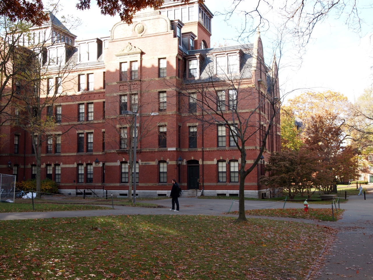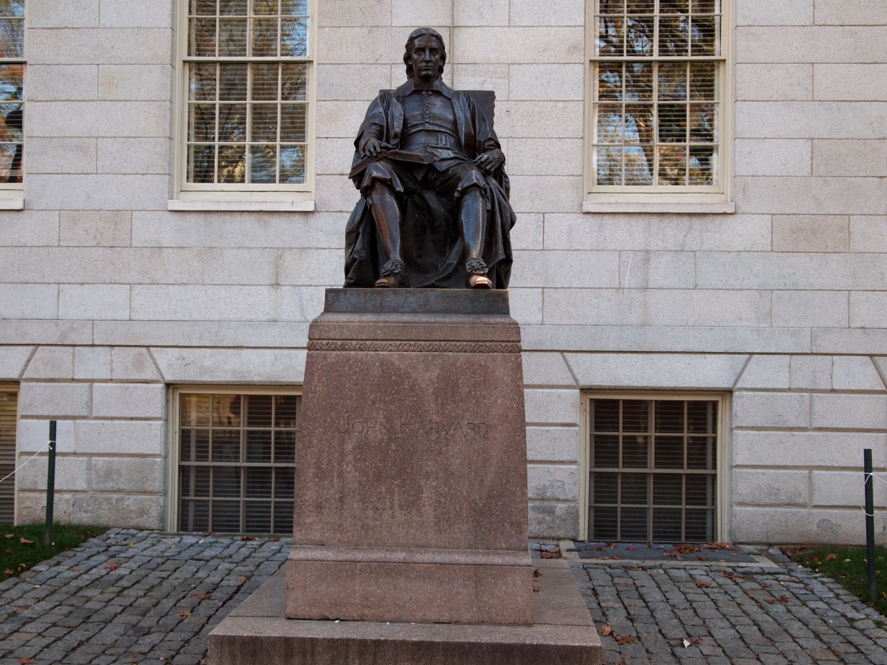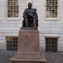 写真スポットは創立者のJohn Harvard 氏の像の前です。